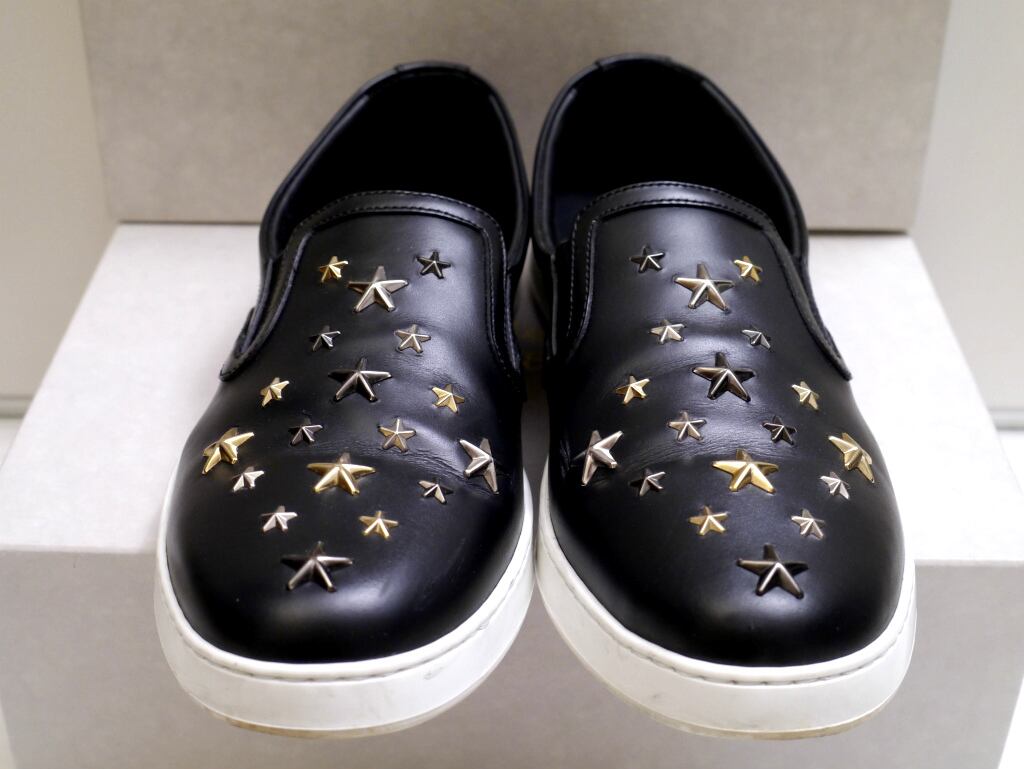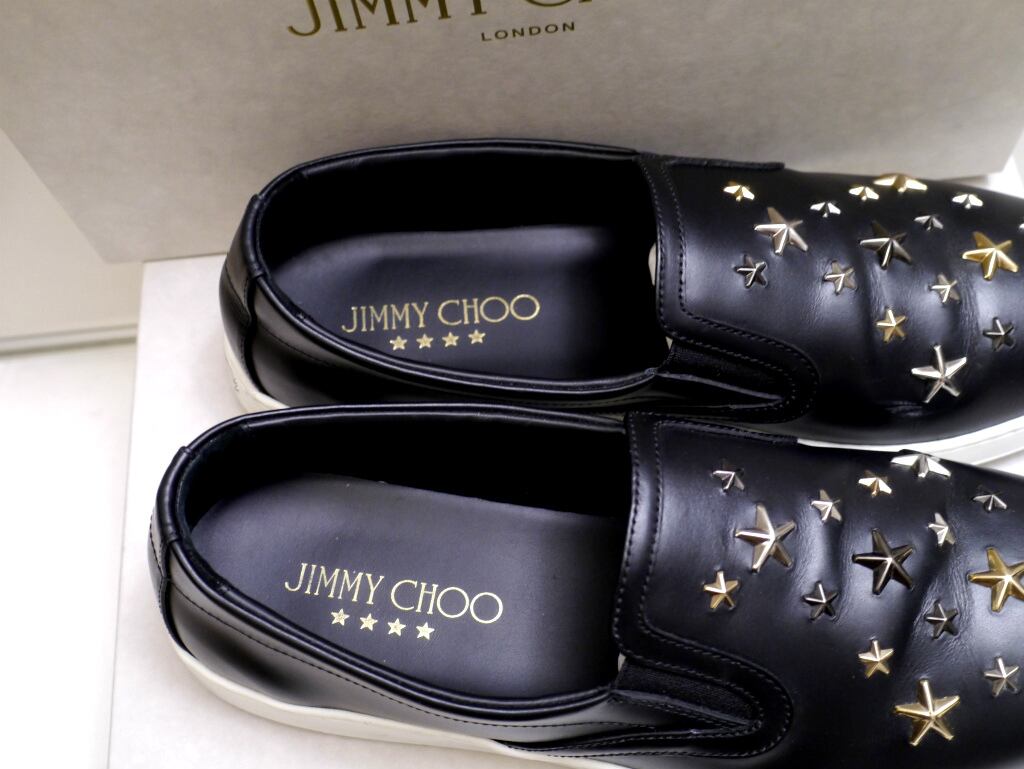 美品10万◆JIMMY CHOO ジミーチュウ GRACY メンズ ☆スタッズ レザー スリッポン スニーカー 41 黒◆ 使いまわしにも便利な定番ブラック♪
