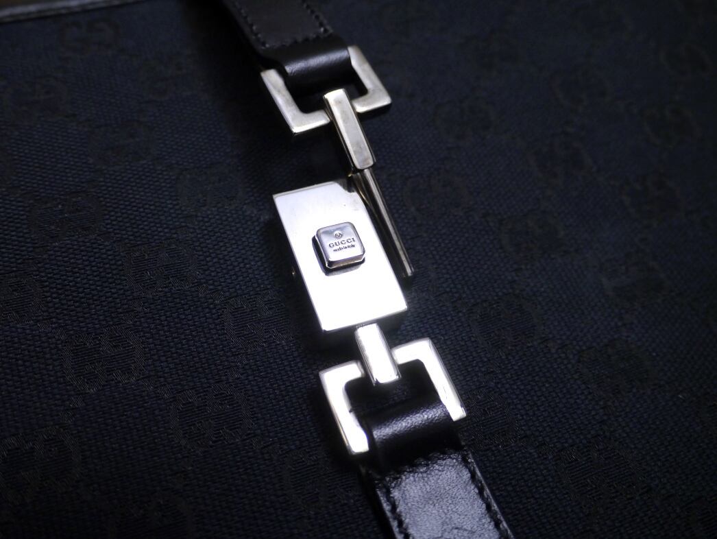 カジュアルになりがちなキャンバス素材も、上質なレザーとのコンビやジャッキーの象徴でもある金具、シックな色味のGG柄でGUCCIのアイテムらしくとても高級感のある仕上がりです。