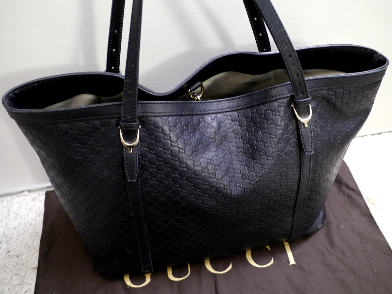 GUCCI(グッチ) マイクロGGライン GGエンボス加工 レザー トート バッグです。