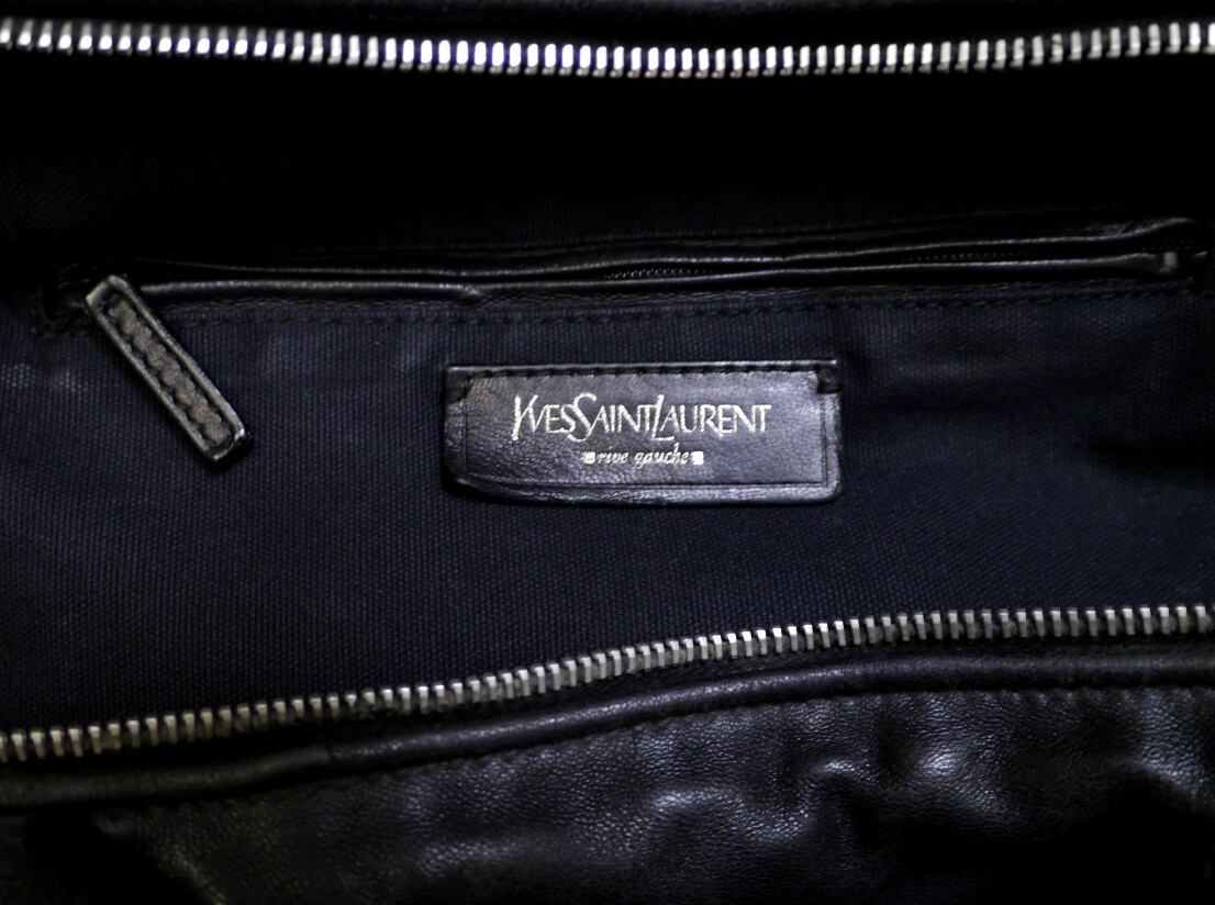 レア◆YvesSaintLaurent サンローラン EASY ROCK 大容量男女可 ジップライン ボストン型 レザー トート バッグ黒◆ 希少なEASYのROCKライン