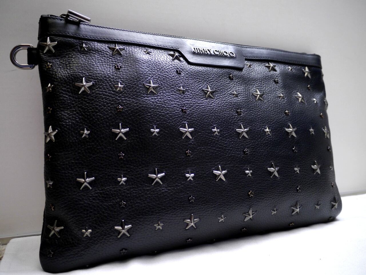 2017美品★JIMMY CHOO ジミーチュウ DEREK デレク A4対応 マルチスタッズ クラッチ バッグ ドキュメントケース 黒★使い勝手の良いサイズ感