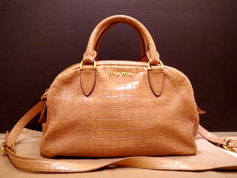 miumiu(ミュウミュウ) クロコ型押し ハンド・ショルダー 2way パテントレザーバッグです。