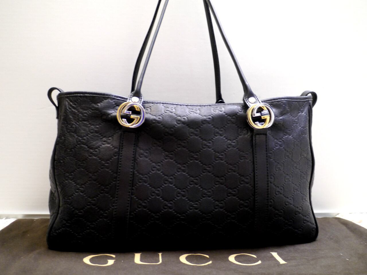 美品◆GUCCI グッチ シマ GGツインズ ビジネス対応 エンボス加工 レザー トート ハンド バッグ 黒◆ 上質な型押レザーが主張するGG TWINS♪