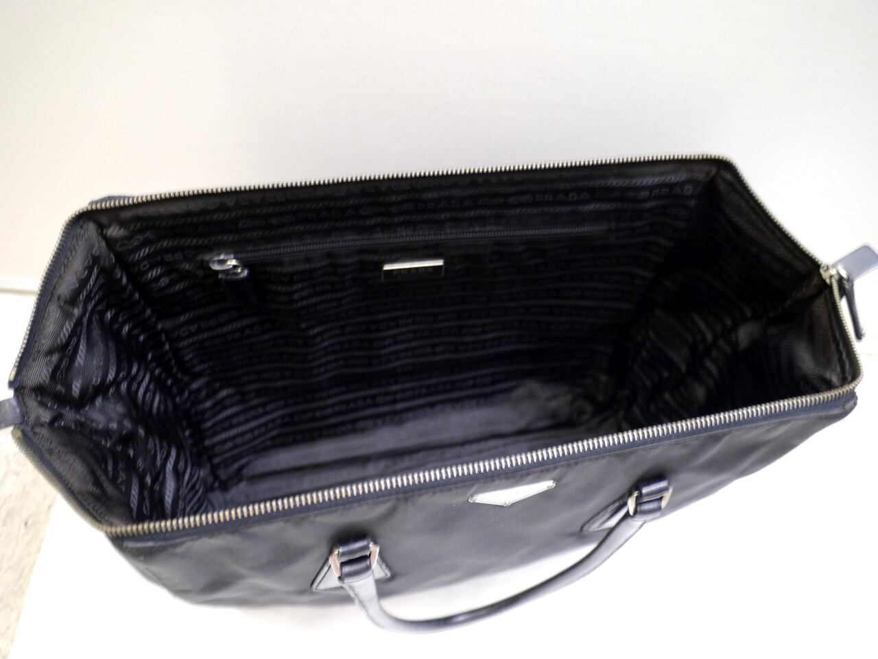 PRADA定番のナイロンバッグですが、カジュアルになりがちな素材感もレザーとの切り替えや上品なシルエットでどこか高級感が漂い、とても軽いので普段使いはもちろん、A4用紙がスッポリと入る使い勝手の良いサイズ感なのでビジネスシーンでも大活躍します。