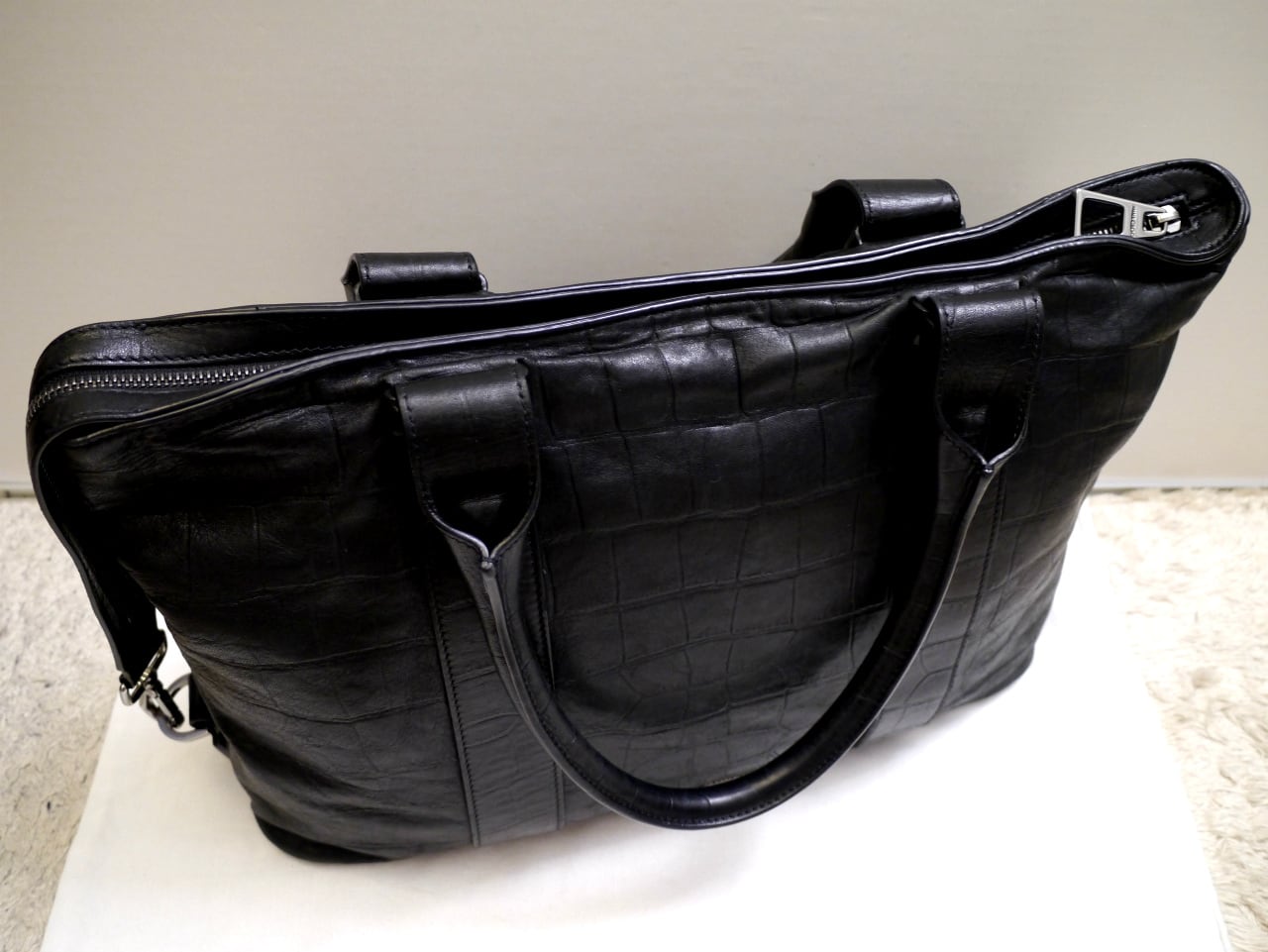 2018AW美品★JIMMY CHOO ジミーチュウ SAVILLE サヴィル メンズ A4対応ビジネス可 クロコ型押 レザー トート バッグ 黒★ 通勤通学にも便利