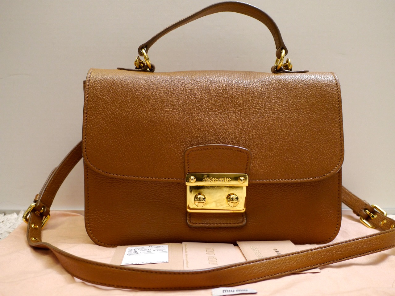 美品★miumiu ミュウミュウ MADRAS マドラス ハンド・ショルダー2way レザー バッグ 茶★ レトロクラシックな雰囲気が可愛らしい人気モデル