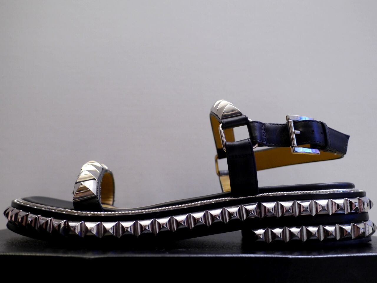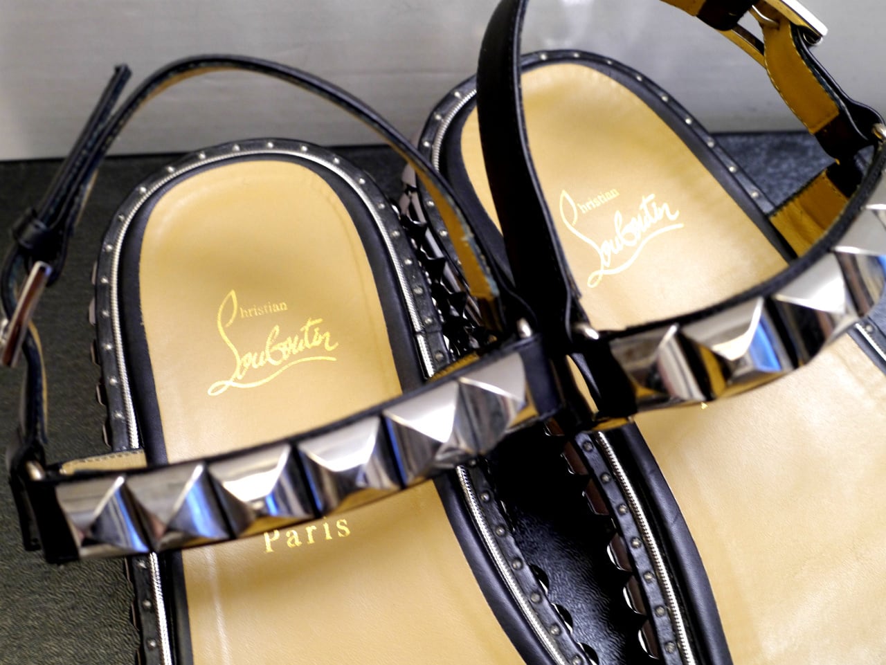 美品◆ChristianLouboutin クリスチャンルブタン ロックスタッズ ストラップ レザー サンダル 40 黒銀◆ ロックスタッズがスタイリッシュ♪