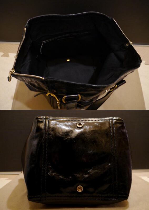 こちらはダウンタウンの中でも最も使い勝手のよいサイズ感で、ゴールドxブラックなので高級感が漂いつつもパテントレザーの質感は決して重くなり過ぎず、マチが広く荷物もたくさん入るので使い勝手も素晴らしいと思います。