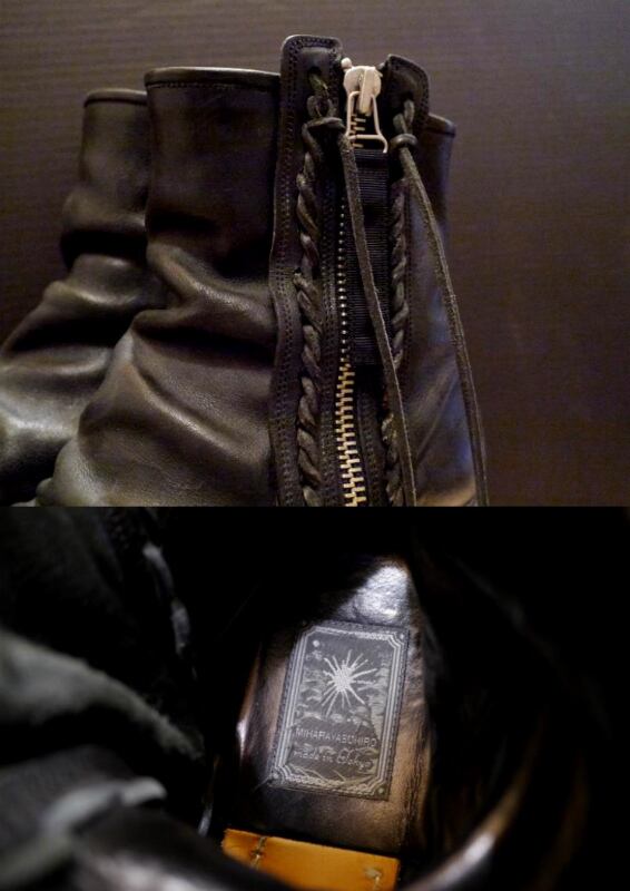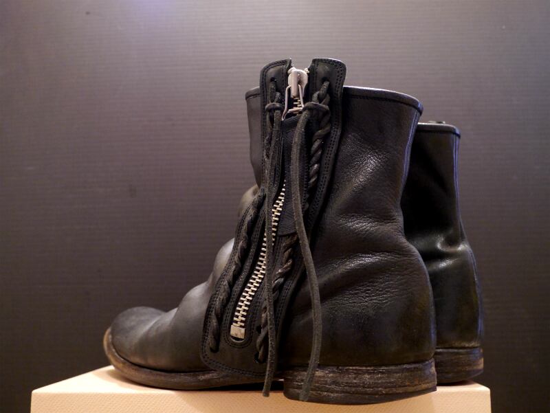 既にお馴染みとなったドレープ感のあるレザーに、サイドの編み上げデザインがさりげなく個性的な、良い意味でとてもミハラらしいブーツです。