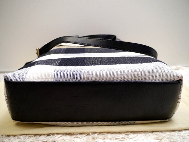 上品さと個性を兼ね備えたまさに【BURBERRY】らしいモデルですが、シンプルなトート型に着脱可能な大きめのポーチも何かと便利で、斜め掛けも可能なハンド・ショルダーの2way仕様なので使い勝手も素晴らしいと思います。