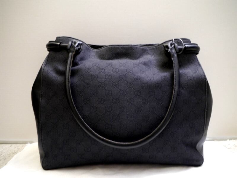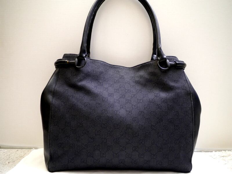 美品17万◆GUCCI グッチ GG柄 ユニセックス A4対応 ビジネス可 キャンバスxレザー トート ハンド バッグ 黒◆ 通勤通学にも便利なトート型