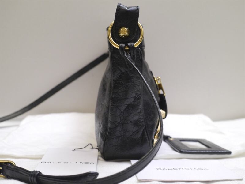 美品◆BALENCIAGA バレンシアガ 男女可 ジャイアントヒップ クロスボディ レザー ショルダー バッグ黒◆ ゴールドのジャイアントスタッズ♪