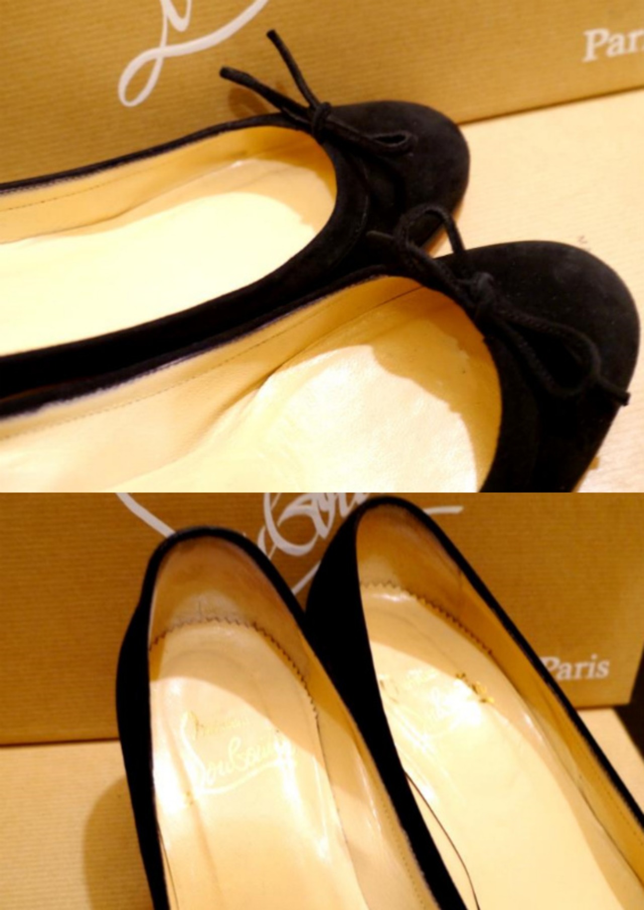 美品★クリスチャンルブタン スエードリボン パンプス 黒★