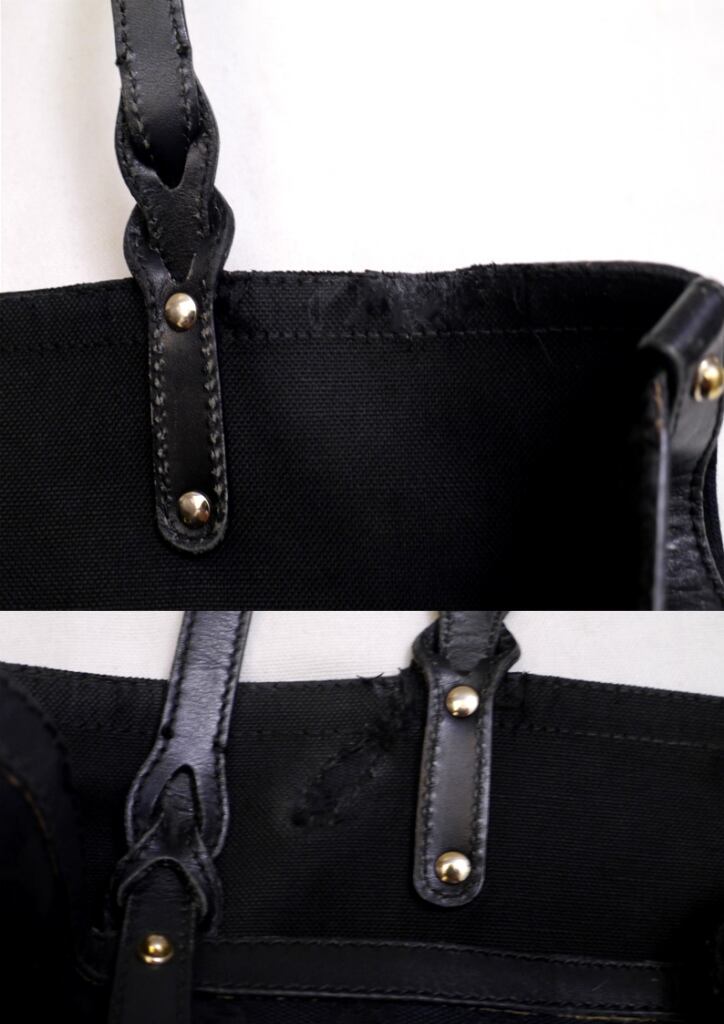※若干の使用感(レザー小傷、薄ら汚れ、開口部内側のキャンバス素材にホツレ・剥がれ等)が見られます。使用時に目立つようなダメージはなくまだまだご使用頂ける状態だと思いますが、ややダメージのある商品なので中古品にご理解のない方や美品をお求めの方はご遠慮願います。