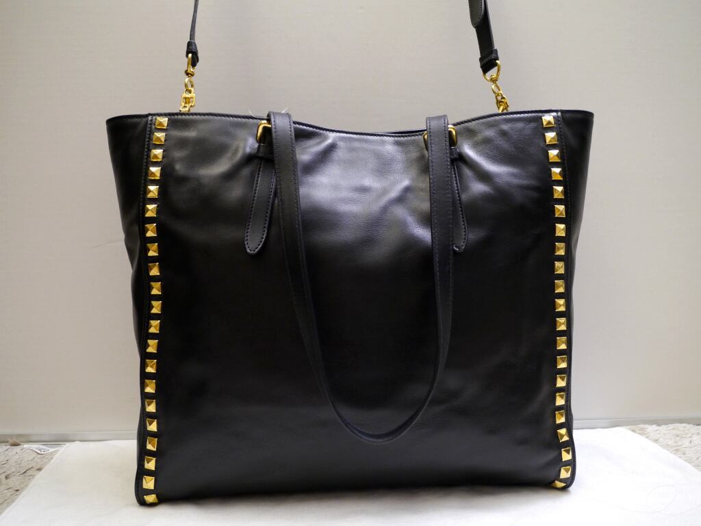 美品★miumiu ミュウミュウ VITELLO MILLENI ロックスタッズ A4対応ビジネス可 2way レザー トート バッグ黒★ ロックスタッズの希少モデル
