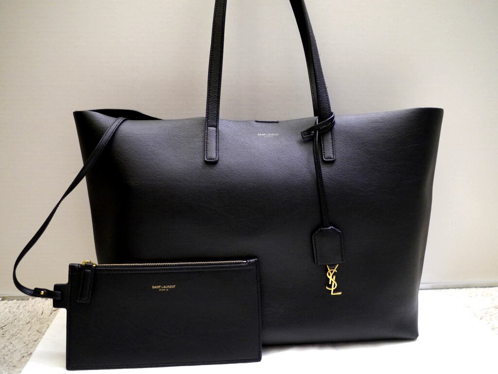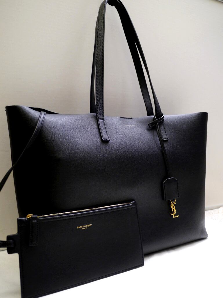 2017美品◆SAINTLAURENT PARIS サンローラン ショッピングトート LARGE A4対応ビジネス可 レザー バッグ黒◆ 取り外し可能なポーチも便利♪