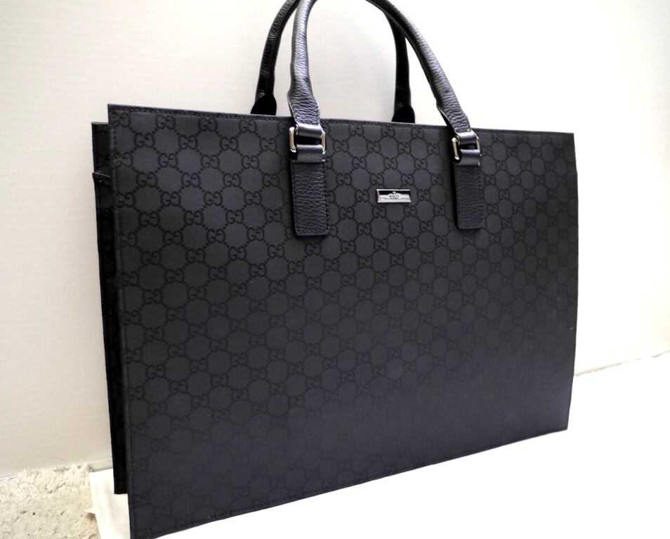 美品◆GUCCI グッチ GG柄 A4対応 ビジネス可 ユニセックス ナイロンxレザー 書類 バッグ ブリーフケース 黒◆ ビジネスシーンでも大活躍♪
