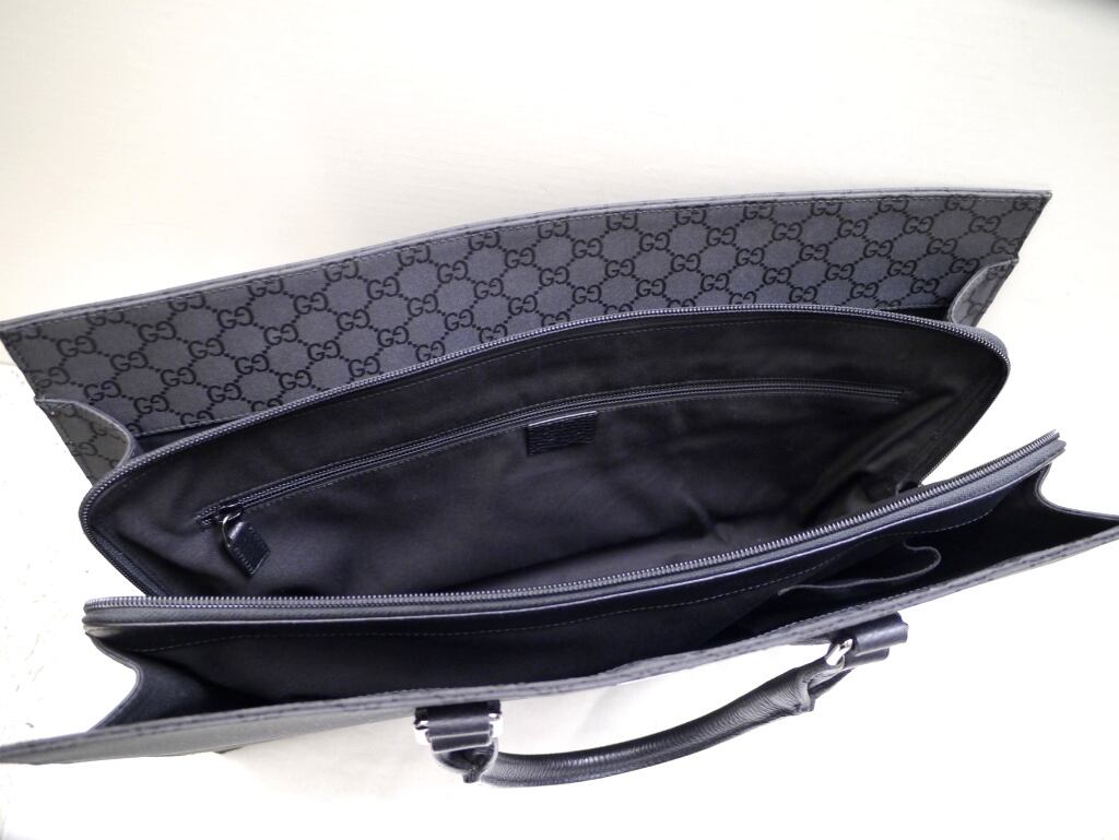 カジュアルに見えてしまいがちな素材もシックなGG柄やレザーとのコンビで高級感が漂い、オールレザーと違いとても軽いので書類等で荷物が重くなってしまう方にとっては強い味方になると思います。