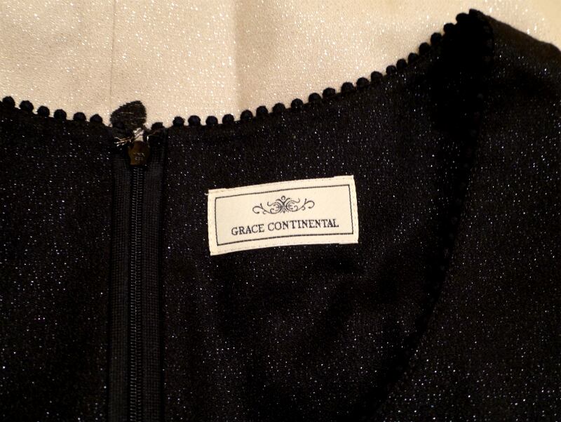 上品なブラックxベージュの色味に香水ボトル柄がさりげなく主張し、大人っぽい雰囲気ながらも遊び心を効かせたGRACE CONTINENTALらしいデザインです。