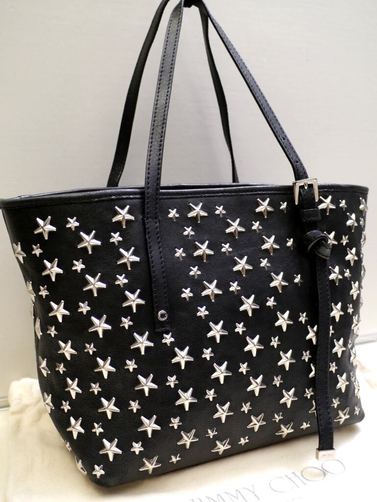 18万★JIMMY CHOO ジミーチュウ SASHA サシャ ☆スタッズ レザー トート バッグ 黒x銀★ 定番の☆スタッズが可愛らしいトート型万能モデル
