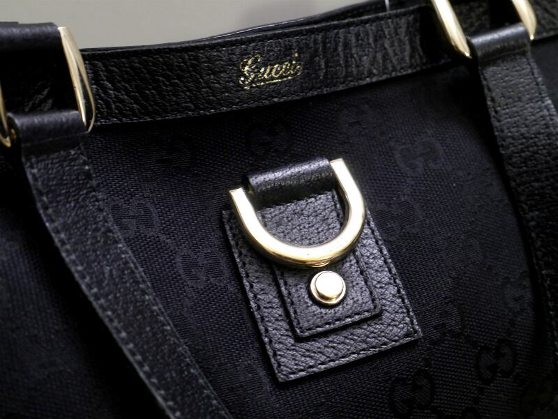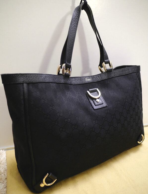 美品12万◆GUCCI グッチ アビー GGライン A4対応 ビジネス可 男女可 スタッズ キャンバスxレザー トート バッグ 黒◆ 通勤通学にも大活躍♪