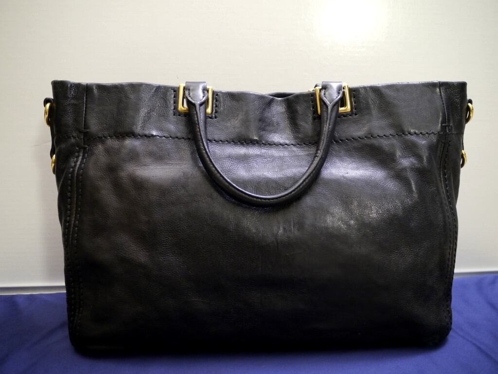 PRADA(プラダ) ゴールドロゴ 大容量 レザー トート ハンド バッグ です。