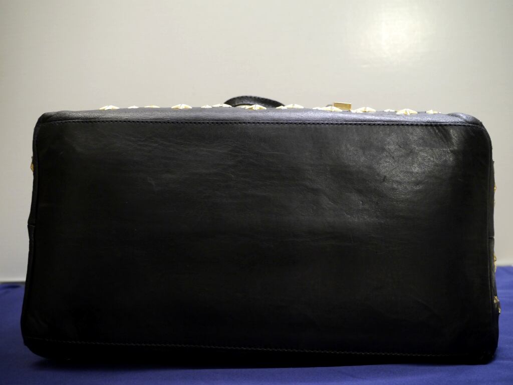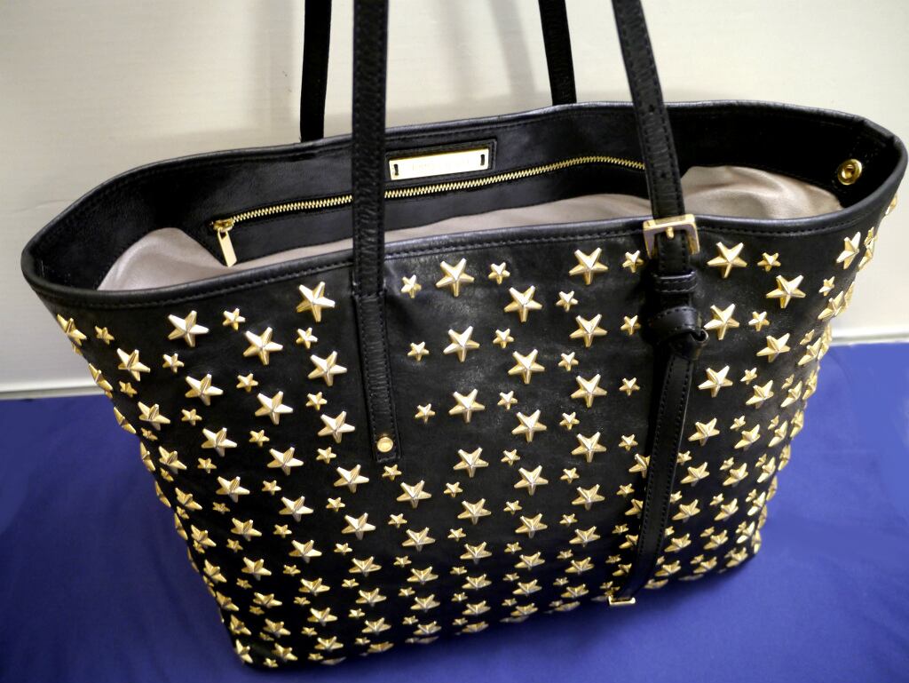 2016美品★ JIMMY CHOO ジミーチュウ SASHA M A4対応 マルチ☆スタッズ レザー トート バッグ M 黒x金★ ☆スタッズが可愛らしい万能モデル