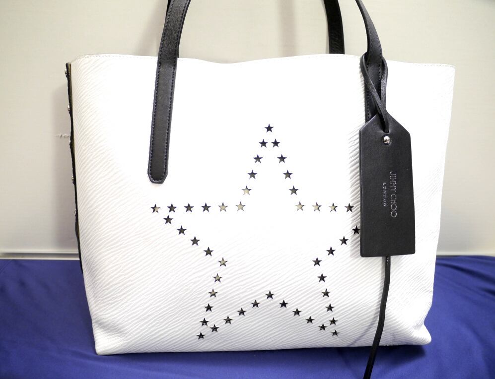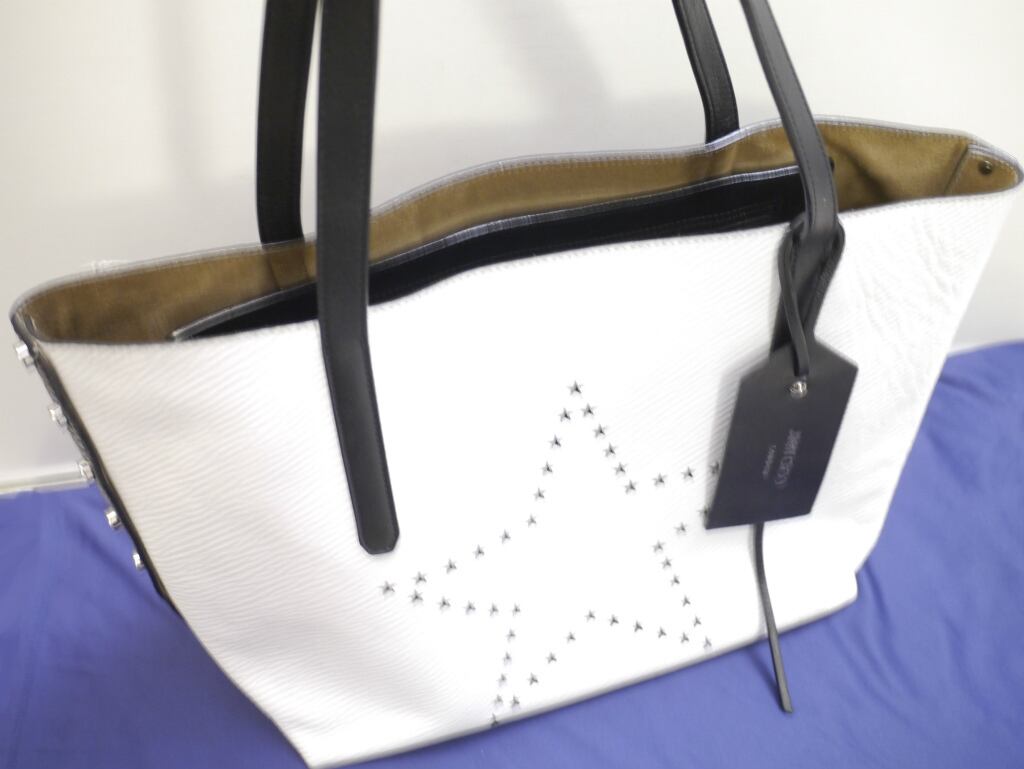 2016★JIMMY CHOO ジミーチュウ PIMLICO INSIDE OUT サイドスタッズ レザー トート バッグ 白x黒★ パンチング☆とサイズスタッズが主張♪