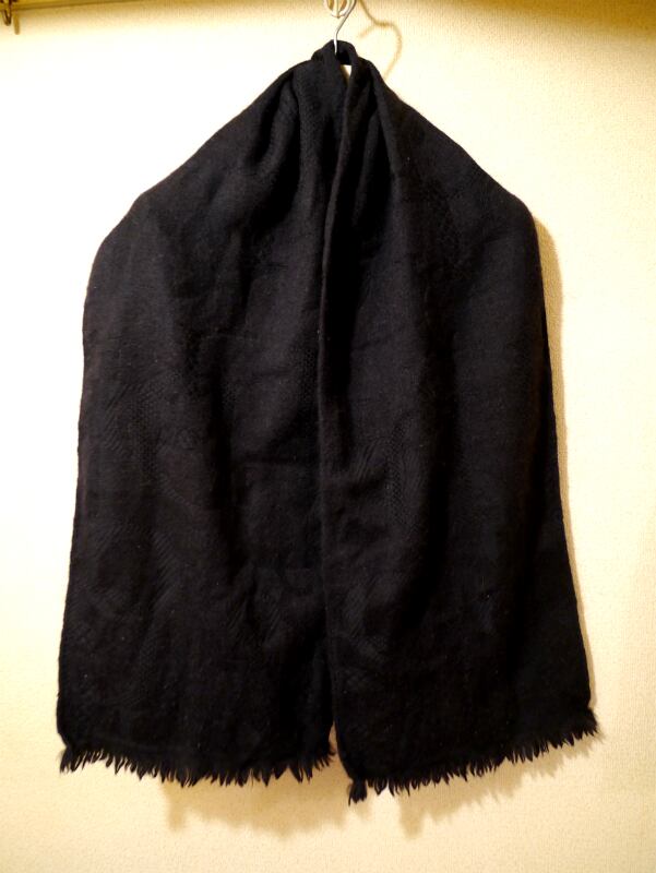 グラフィックが入っていますが黒地に黒なのでやり過ぎ感はなく流行問わずにご活用頂け、こちらは上質な肌触りの良いカシミア混のようなウール素材で保温性も高く、見た目にも暖かみが出るので特に冬場は重宝するはずです。