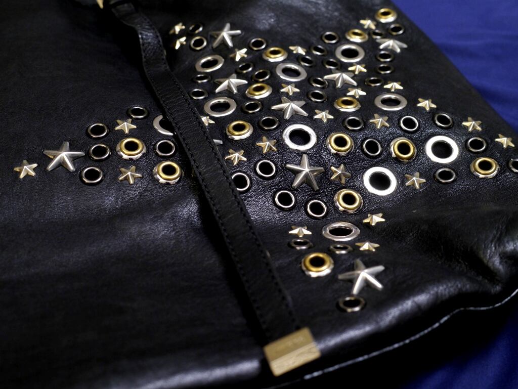長きに渡ってJIMMY CHOOの定番ラインとしてお馴染みのSASHAですが、こちらは〇☆スタッズを散りばめ★形を形成した希少ラインのミディアムサイズです。