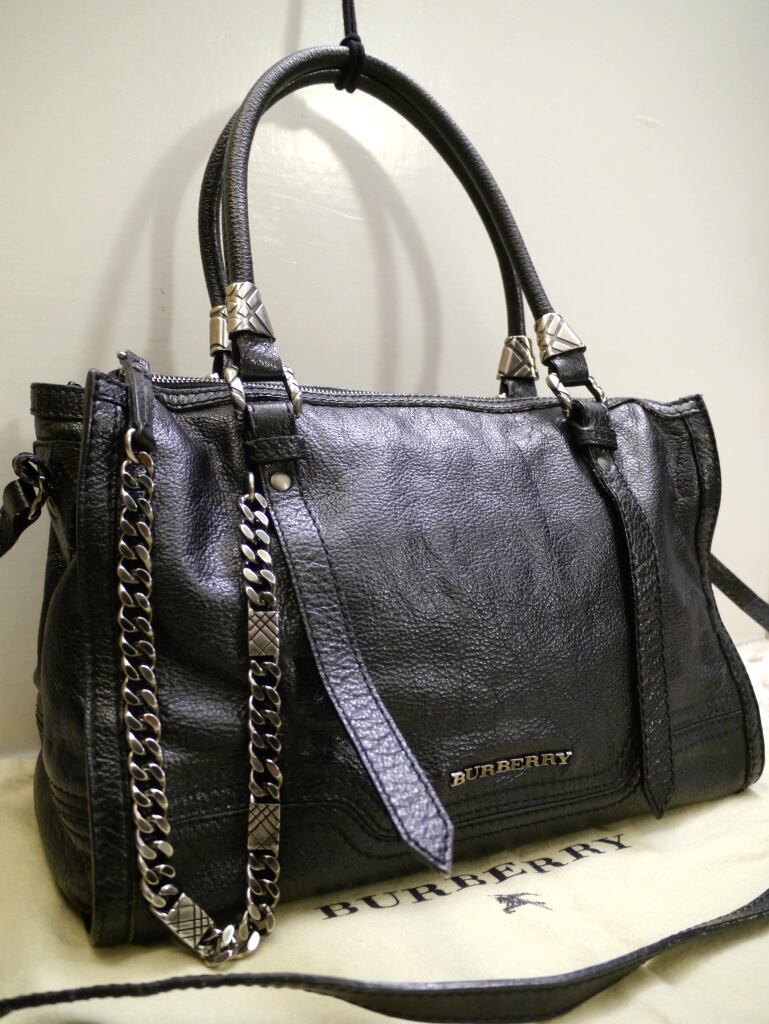 美品26万★BURBERRY PRORSUM バーバリープローサム チェーンデザイン 2way レザー トート バッグ 黒★ ハイエンドラインの圧倒的な存在感♪