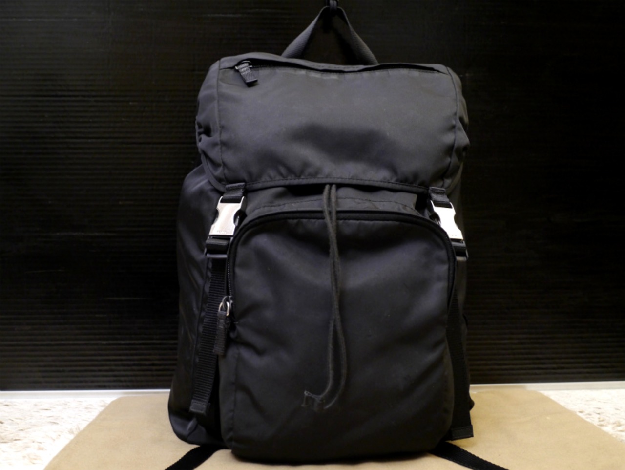 美品17万◆PRADA プラダ V135 ユニセックス 大容量 ナイロン リュック バックパック ロックサック 黒◆使い勝手の良さで人気の定番モデル♪