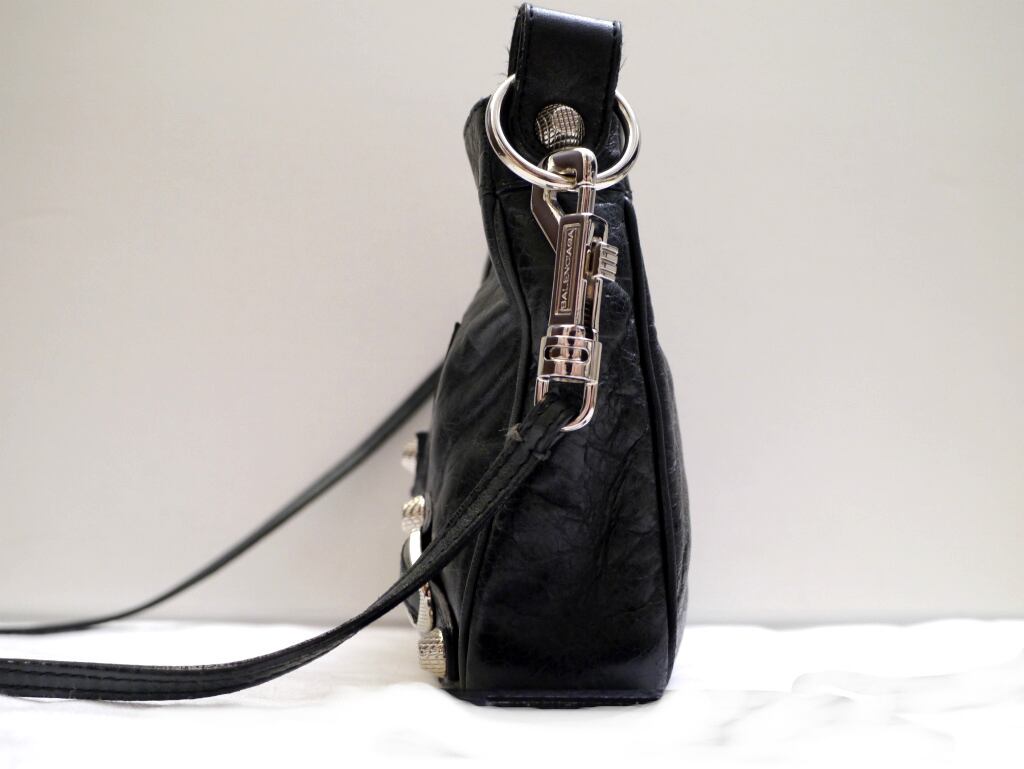 美品◆BALENCIAGA バレンシアガ ザ・ジャイアントヒップ クロスボディ レザー ショルダー バッグ 黒銀◆ シルバーのジャイアントスタッズ♪