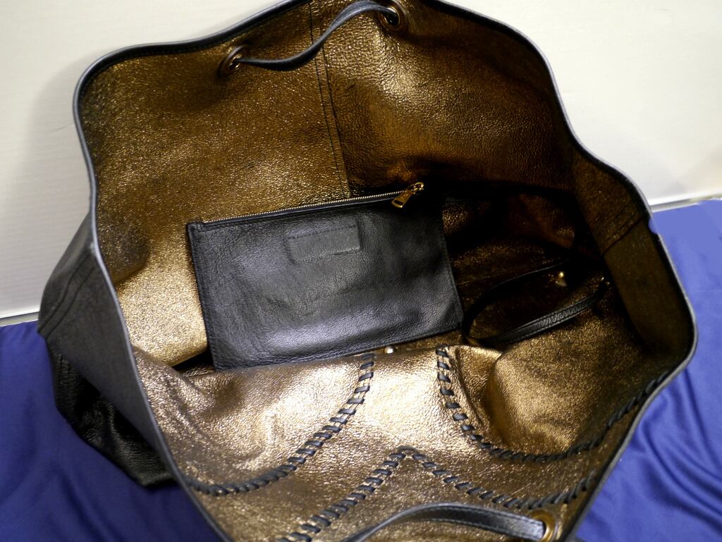 21万◆YSL サンローラン NEO DOUBLE ネオダブル A4対応ビジネス可 大容量 レザー トート バッグ 黒x金◆ 付属のポーチも便利な定番モデル♪