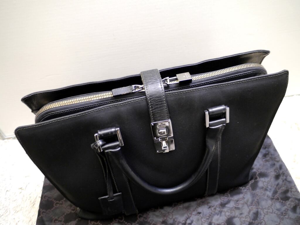 18万◆GUCCI グッチ A4対応 ノートPC可 ナイロンキャンバスxレザー ハンド バッグ ブリーフケース 黒◆ A4対応で通勤・通学時にも大活躍♪