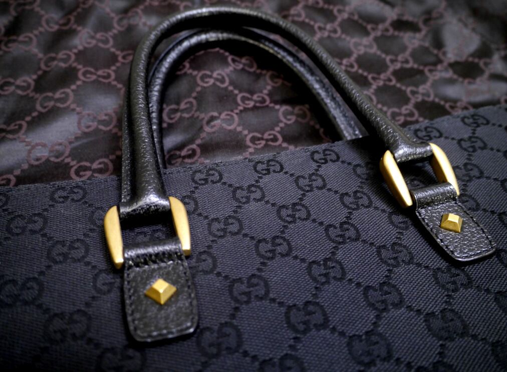 GUCCI(グッチ) GG柄 スクエアスタッズデザイン キャンバスxレザー切替 トート バッグです。