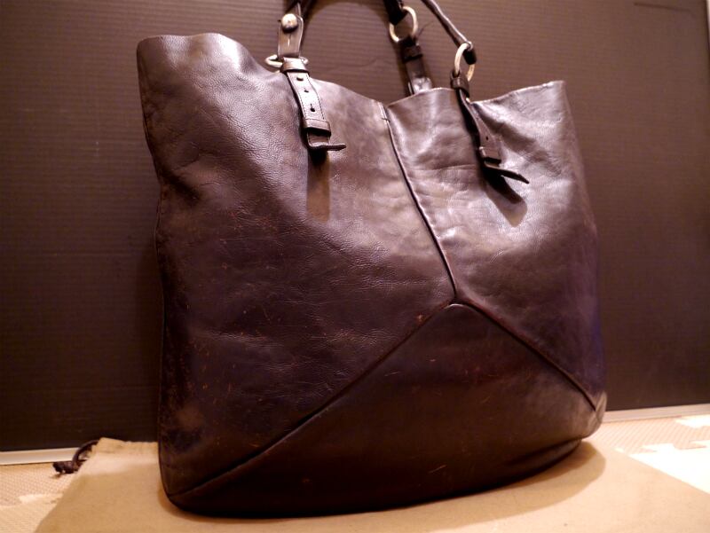 一見シンプルなヴィンテージレザーのトートバッグですが、さりげなくボディの【Y】が主張し独特の雰囲気を醸し出します。
