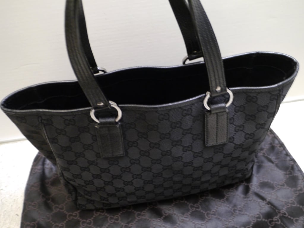 16万◆GUCCI グッチ GG柄 ユニセックス A4対応 ビジネス可 キャンバスxレザー切替 トート ハンド バッグ 黒◆ A4対応で通勤通学にも大活躍