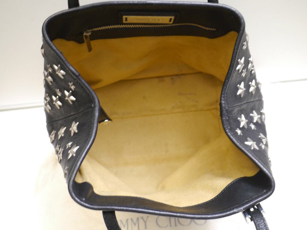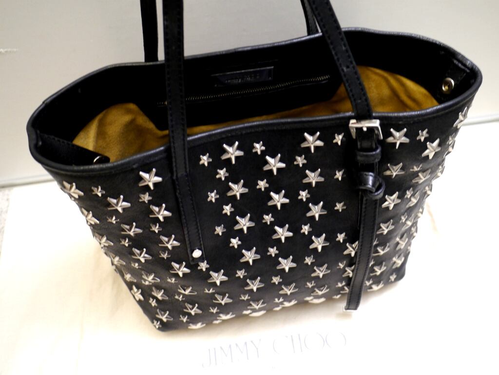 美品18万★JIMMY CHOO ジミーチュウ SASHA サシャ ☆スタッズ レザー トート バッグ 黒x銀★ ☆スタッズが可愛らしいトート型万能モデル♪