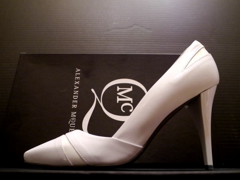 奇抜なアイテムの目立つマックイーンですが、こちらはストイックなまでに上品な印象のシンプルなホワイトレザーで、イギリス王室も愛用する高貴な“雰囲気”のあるパンプスです。