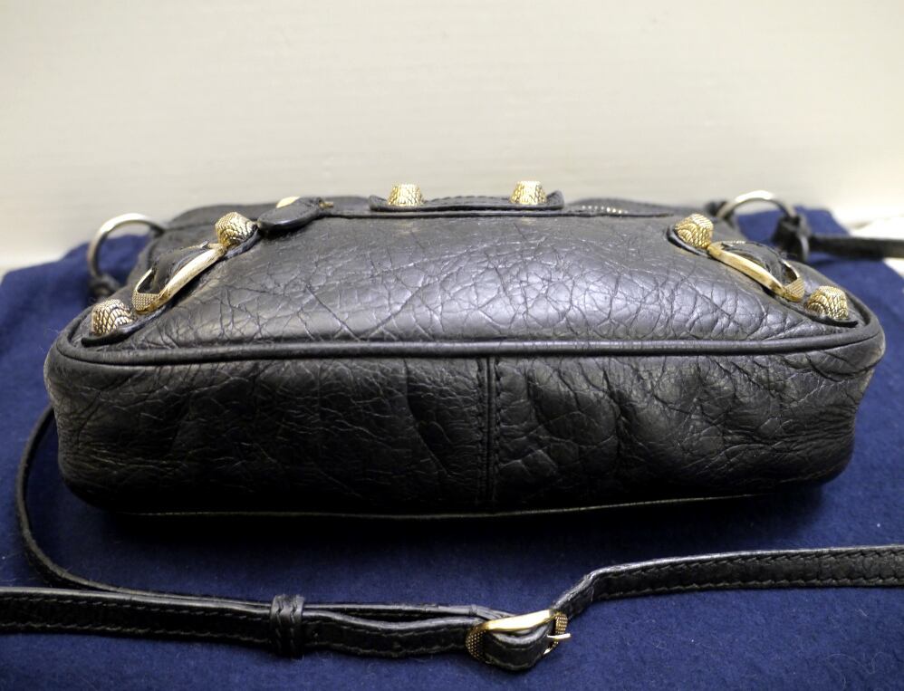 ◆BALENCIAGA バレンシアガ 男女可 ザ・ジャイアントヒップ クロスボディ レザーショルダー バッグ 黒金◆ ゴールドのジャイアントスタッズ