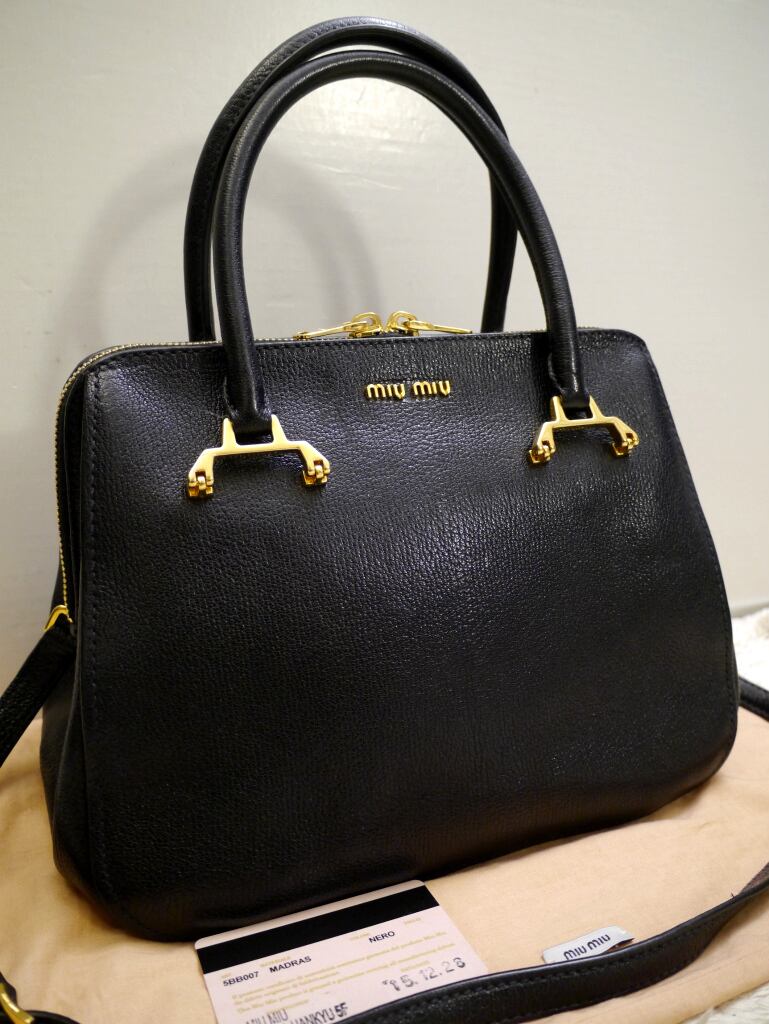 美品★miumiu ミュウミュウ MADRASマドラス ハンドショルダー2way レザー トート バッグ 黒★ クラシックな雰囲気が可愛らしい人気モデル♪