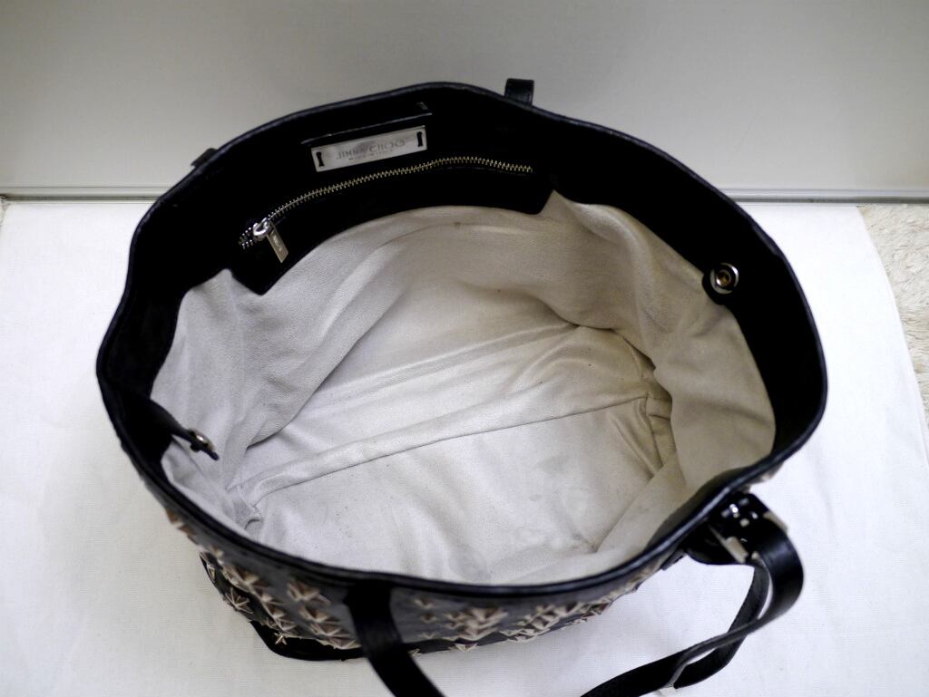 美品18万★JIMMY CHOO ジミーチュウ SASHA サシャ ☆スタッズ レザー トート バッグ 黒x銀★ ☆スタッズが可愛らしいトート型万能モデル♪