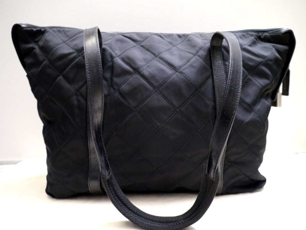 美品◆PRADA プラダ A4対応 ビジネス可 ダイヤルカデナ キルティング ナイロンxレザー トート バッグ 黒◆ 使い勝手抜群のミニボストン型♪