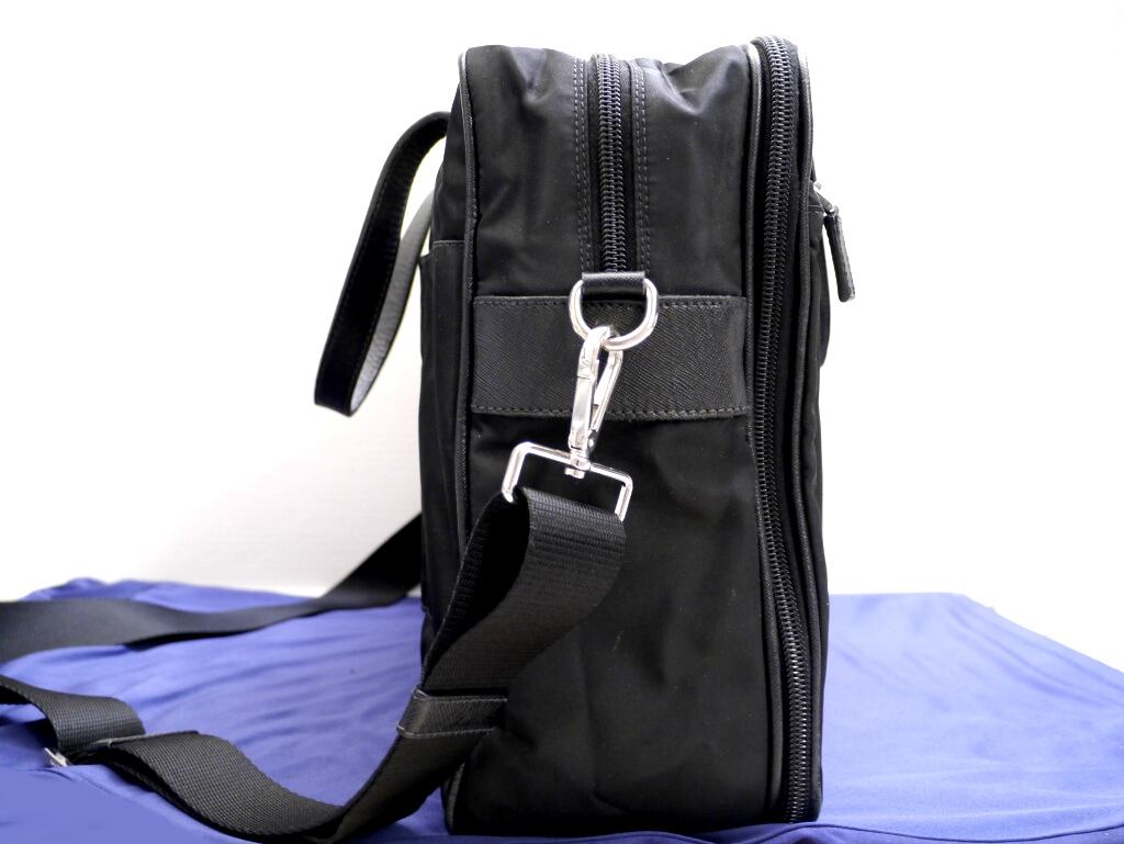 美品18万◆PRADA プラダ ノートPC対応 男女可 サフィアーノレザーxナイロン バッグ ブリーフケース 黒◆ 色褪せることのないビジネスモデル
