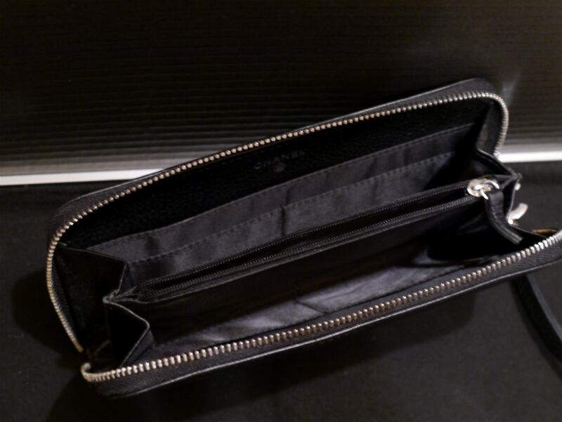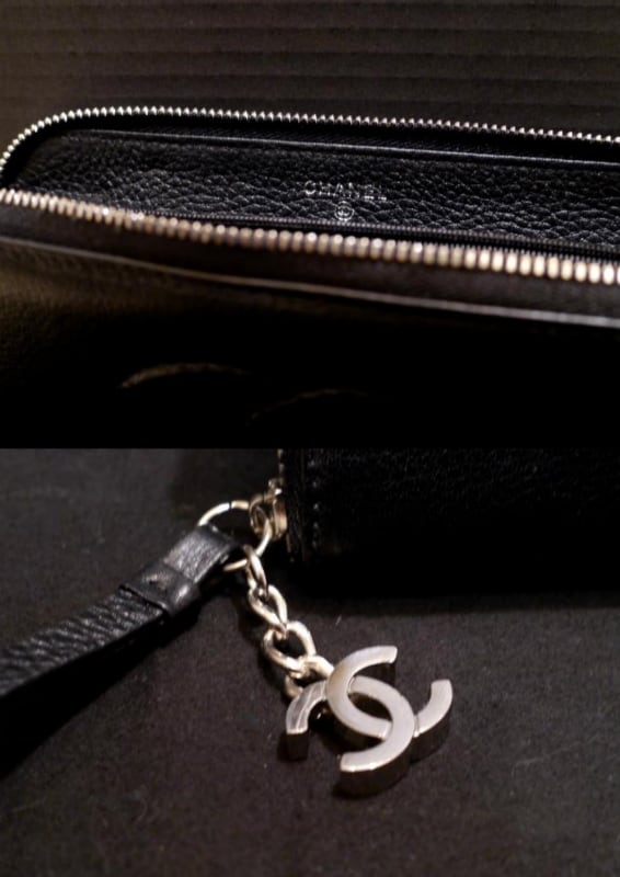 一見CHANEL定番のお馴染みのアイテムですが、ジップ部分のCCマークチャームや背面のチェーン状のシルバーデザインがさりげなく主張する、あまり見かけない貴重なデザインです。