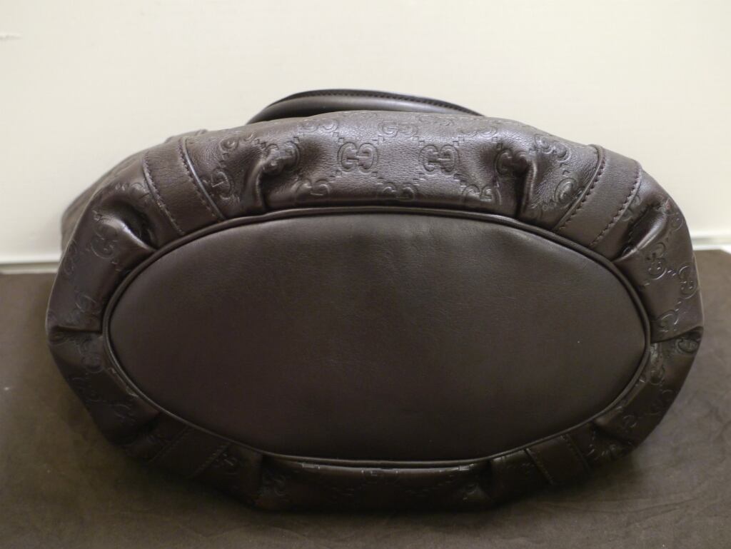 美品28万◆GUCCI グッチ シマ アビー A4対応 ビジネス可 GGエンボス 型押 レザー トート ハンド バッグ 濃茶◆ 通勤通学にも大活躍のA4対応