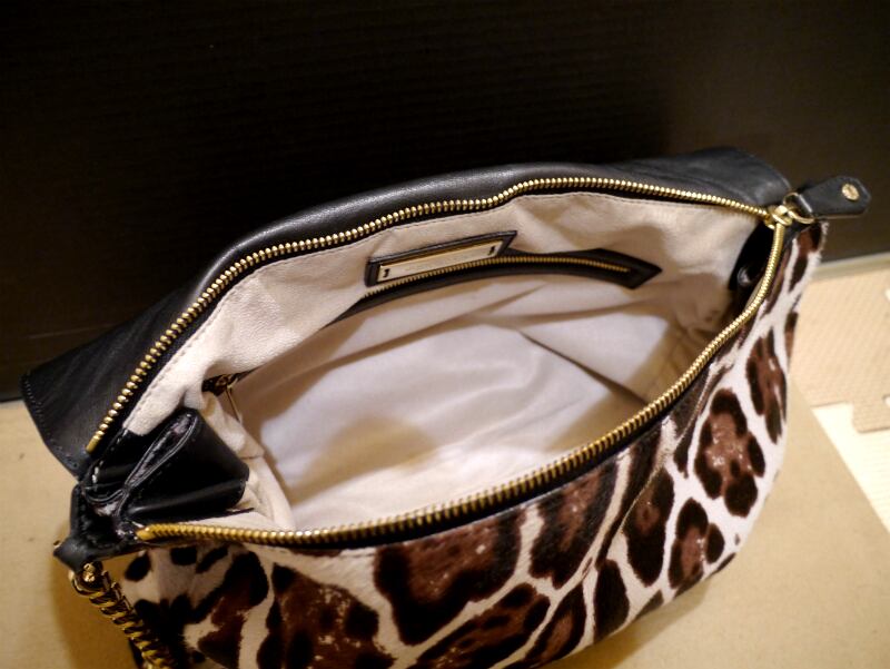シンプルなものから奇抜なデザインまで幅広いラインナップが魅力のジミーチュウのバッグ類ですが、ハラコのレオパード柄にゴールドのチェーンが存在感を放ち、良い意味でジミーチュウらしさ満点のアイテムです。