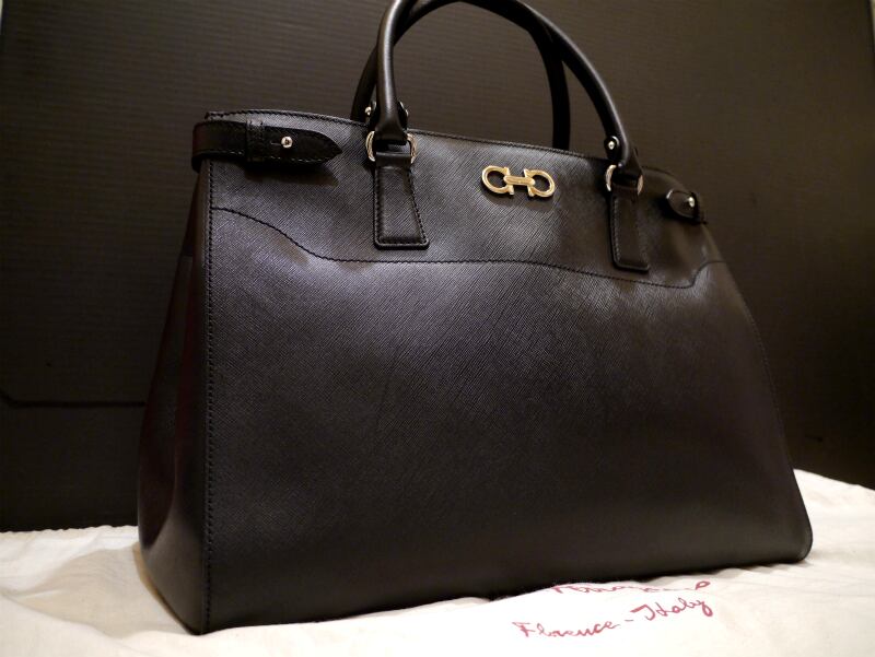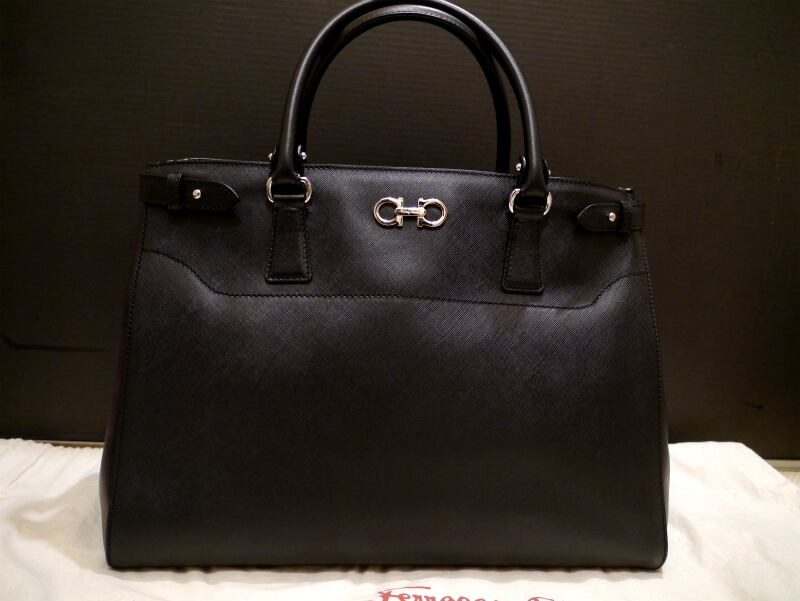 新品◆フェラガモ ガンチーニ サフィアーノ レザー 2way バッグ 黒◆