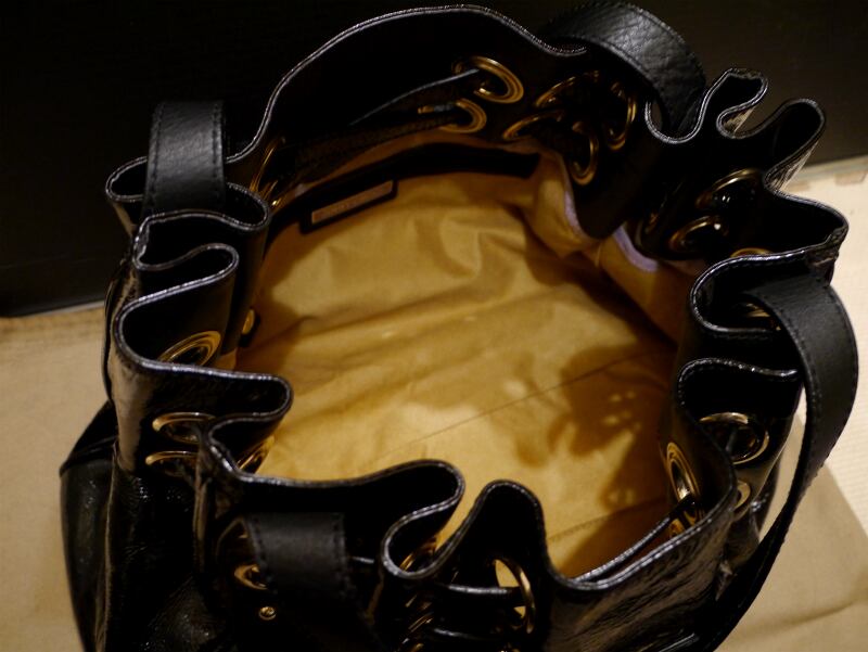 ブラックxゴールドの配色が高級感を醸し出しつつ、光沢感のあるパテントなのでカジュアルスタイルにももちろん対応し、荷物がたくさん入るデザインなのでデイリーで大活躍するはずです。